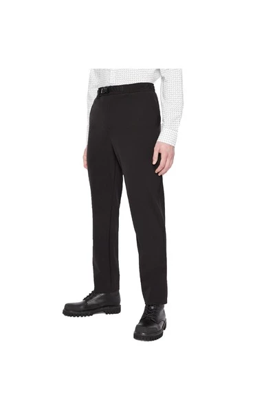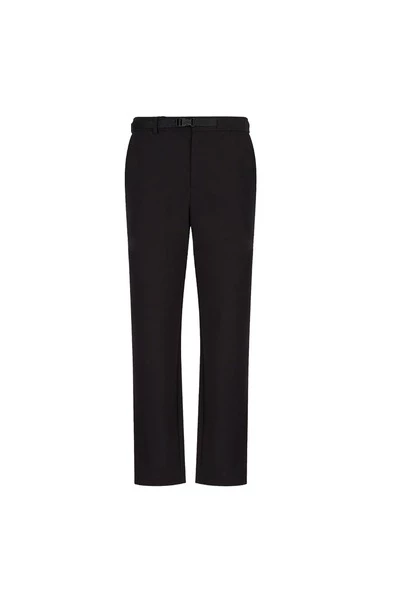 Onder de typische elementen van technische kleding onderscheidt de gesp op zijn onmiskenbare concreetheid. Die hier wordt overgebracht naar de klassieke gesneden broek gemaakt van hi-tech stof. Klassieke broek in stretch nylon. Lint aan de taille met gesp. Zij- en achterzakken
