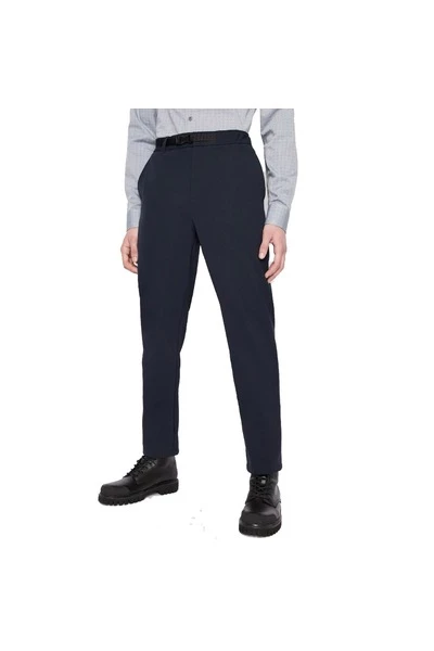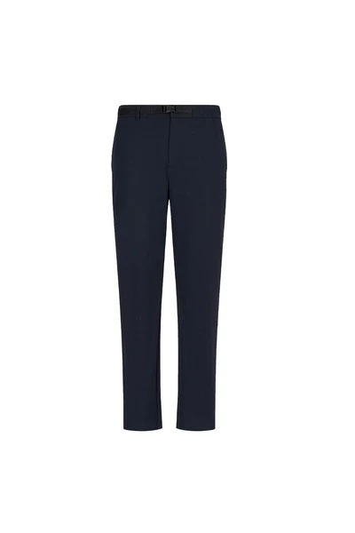 Onder de typische elementen van technische kleding onderscheidt de gesp op zijn onmiskenbare concreetheid. Die hier wordt overgebracht naar de klassieke gesneden broek gemaakt van hi-tech stof. Klassieke broek in stretch nylon. Lint aan de taille met gesp. Zij- en achterzakken