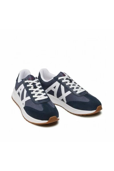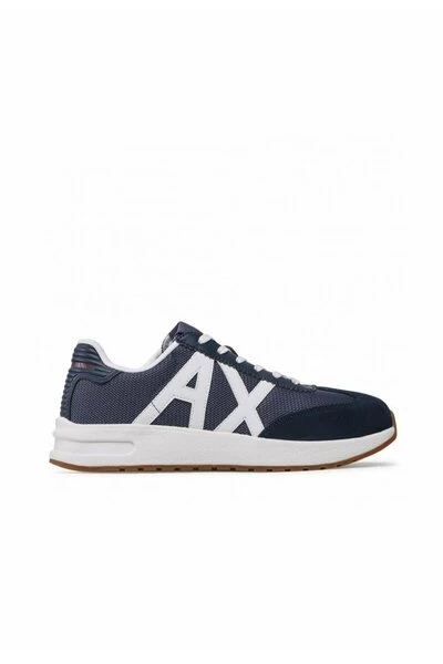 Grote lederen sneakers – Armani Exchange. Tonen: de blues. Model: sneakers. Boven/staaf: Zweden. Logo: Cousu. Bout: Round. Talon: Dish. Inner Sole: Textiles. Buitenzool: rubber. Sluiting: veters. Onderhoud: was niet wassen. Tip: neem uw gebruikelijke maat.