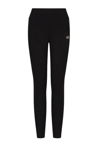 Armani Exchange Legging, FW 22-23 Collection, zwart met contrastlogo aan de voorkant, Pitillo, aangepaste snede, elastische riem. Samenstelling 53% polyamide, 41% viscose, 9% elastaan.