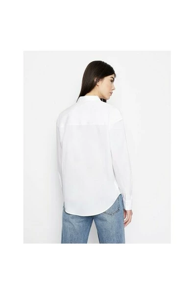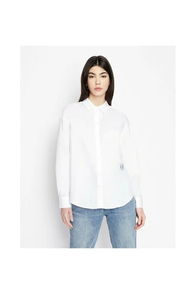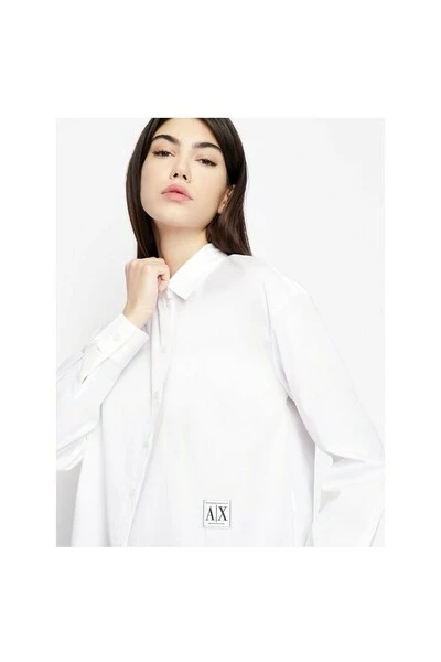 Armani Exchange Power Shirt, SS22-collectie, witte kleur met contrast logo, klassieke hals, hoofdsluiting met knoppen, knoppen cuffspositie 100% katoen.