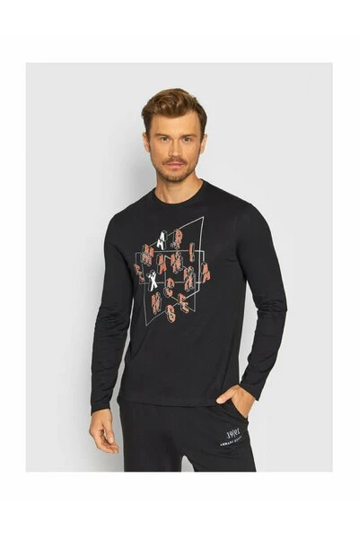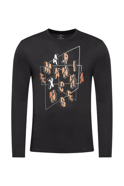 PIMA Cotton Gedrukt T-shirt – Armani Exchange. Tonen: Zwarten. Rechte snede. Ronde kraag. Lange mouwen. Logo: gedrukt. Onderhoud: Wassen van de machine. Tip: neem je gebruikelijke maat. Materiaal: 100% katoen PIMA.