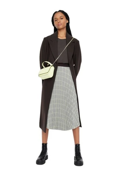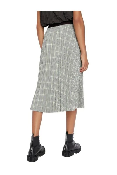 Midi geplooide rok van Armani Exchange, FW 22-23 collectie, grijs met Prince of Wales, elastische taille. Samenstelling 88%polyester, 8%viscose, 3%elastaan.