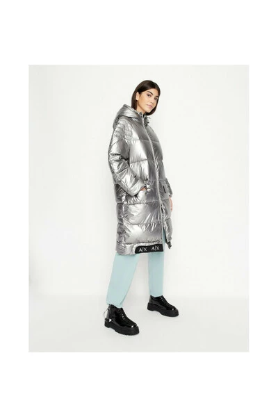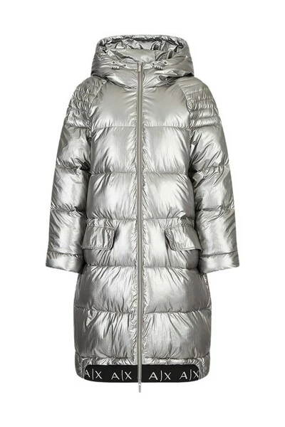 Armani Exchange Chaqueton, FW 22-23 Collection, zilver met logo in Contrsate, hoofdafsluiting met bidirectionele rits, met verstelbare kap. 100% polyamide buitensamenstelling, 100% polyester voering.