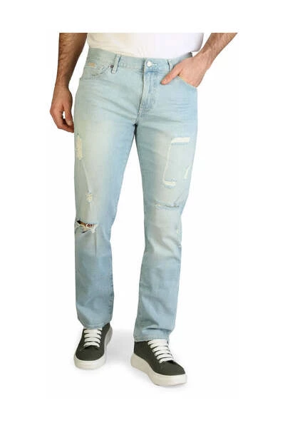 Geslacht: Man Type: Jeans Bevestiging: Knopenzipzakken: 5 Materiaal: katoen 99% Elastaan 1% Was: Wassen op 30 ° C Modelhoogte, CM: 185 Model draagt een maat: 33 Fit: Regelmatig detail