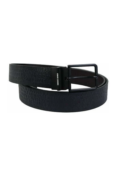 Een klassieke Armani -uitwisselingsgordel. Gemaakt van blauw leer met logomanie. Sluiting met bruine metalen gesp. Blauwe kleur.