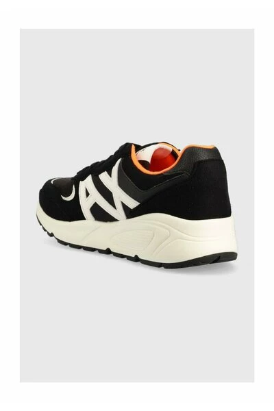 Sneaker met groot logo – Armani Exchange. Tonen: zwarten. Model: sneakers. Boven/staaf: gaas. Logo: Cousu. Bout: Round. Talon: Dish. Inner Sole: Textiles. Buitenzool: rubber. Sluiting: veters. Materiaal: 100% polyurethaan.