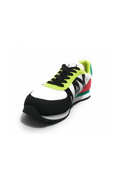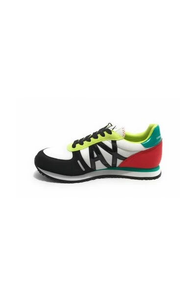Schoeisel Armani Exchange loopt sneaker in zwart ecosuede, nylon en weefsel van witte mesh. Inzetstukken van kalk groen en rood. zwarte veters. Plaats ruwe laminaat op de hiel. leed interieur stof. Fonds in het wit en honing gom. Hak: 2,5 cm. Plateau: 2,0 cm. juiste pasvorm. origineel product