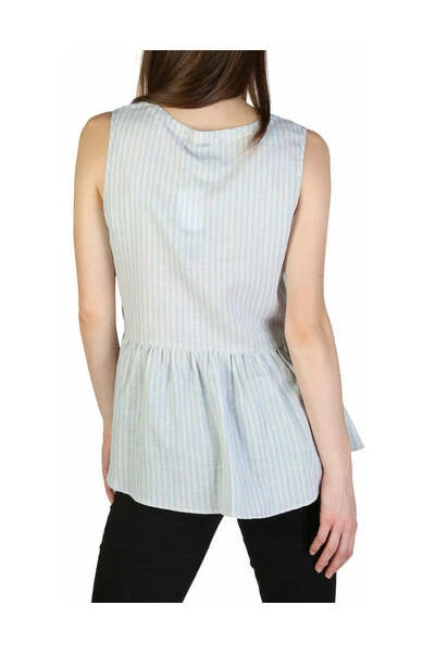 Verzameling: Spring/zomer Geslacht: Vrouw Type: Top Vastleding: Knoppen Mouwen: Mouwloze halslijn: V-Neck Materiaal: Katoen 74% Linnen 26% Patroon: Striped Washing: Hand Wash Model Hoogte, CM: 173 Model draagt een maat: M Detail : zichtbaar logo