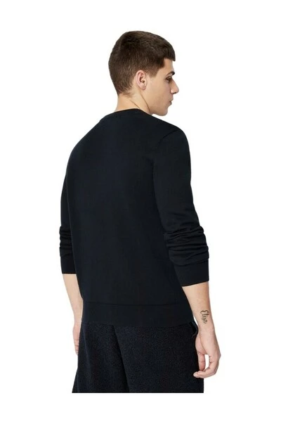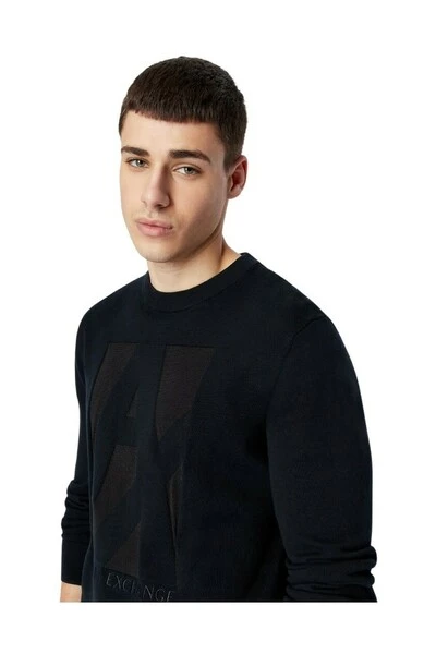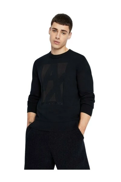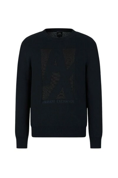 Crewneck -trui, merklogo, gebreide, ronde kraag, lange mouwen in solide kleur