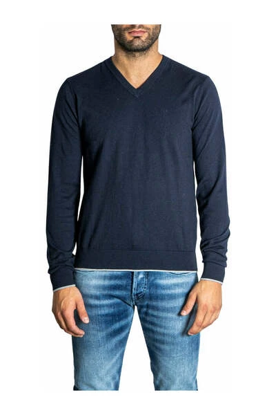 Merk: Armani ExchangeGender: Mentype: Knitwearseizoen: Herfst/Winterproduct Detail • Kleur: Blauw • Mouwen: Lang • Halslijn: V -nekcompositie en materiaal • Samenstelling: -5% Cashmere -95% katoen • Wasmachines bij 30 ° print: PlainMaterial: CottonType: Bomber