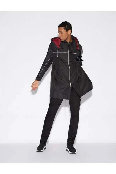 Armani Exchange Hooded Trench, Black Color, Red Hood, Double Face.